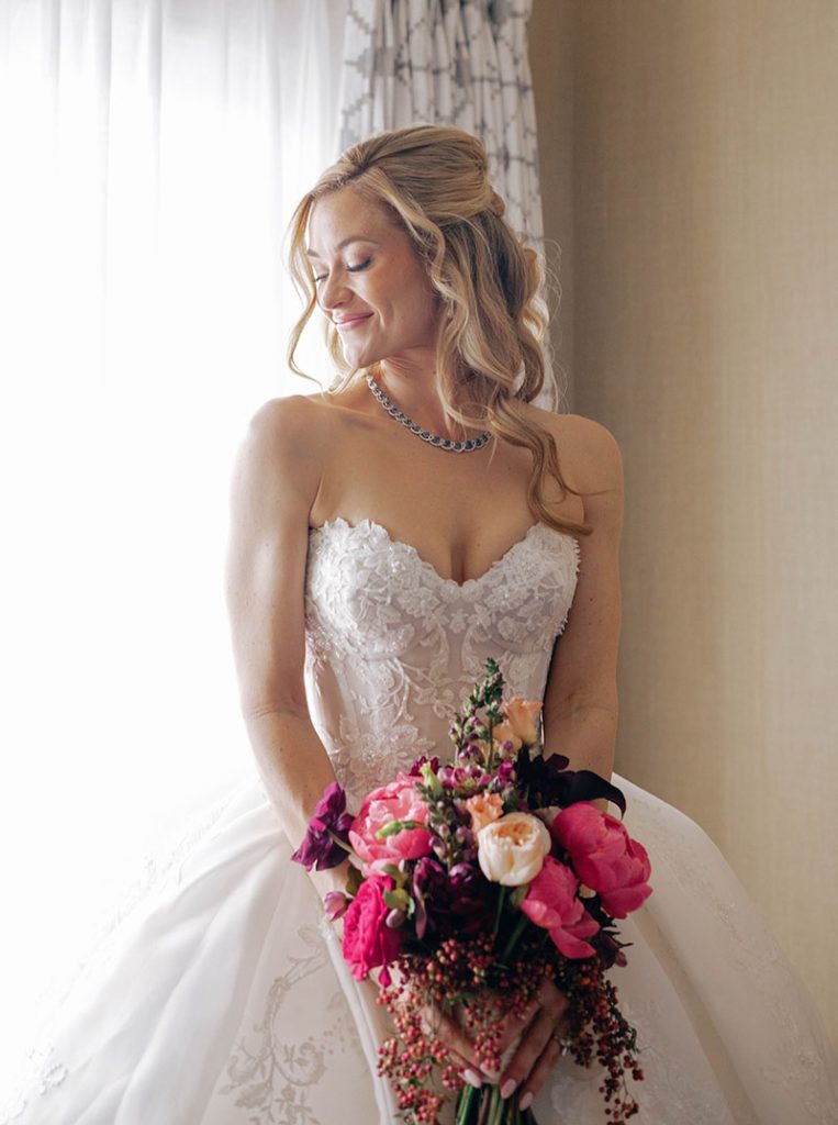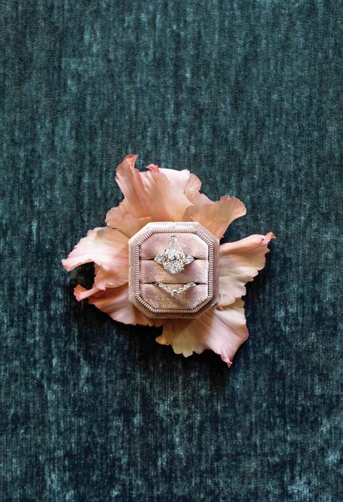 Seven years into their partnership, Ryan began planning an epic proposal during a trip to the Big Apple. While Rebecca was whisked away to an impromptu nail appointment, Ryan set up an intimate candlelit dinner in a suite overlooking Central Park. Rebecca returned to enjoy a chef-curated four-course meal with her closest circle, and afterward Ryan made a speech reflecting on their New Year’s Resolutions. He’d accomplished them all but one: to marry her. In a rush of happy tears, Rebecca exclaimed, “of course I’ll marry you!”