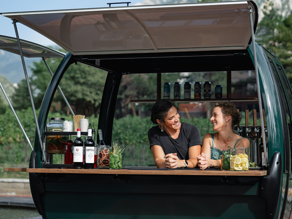 Among Mecca’s most striking elements are the custom gondola bar and photo booth, where refurbished ski gondolas have been reimagined as mobile bars that bring character and charm to any event.